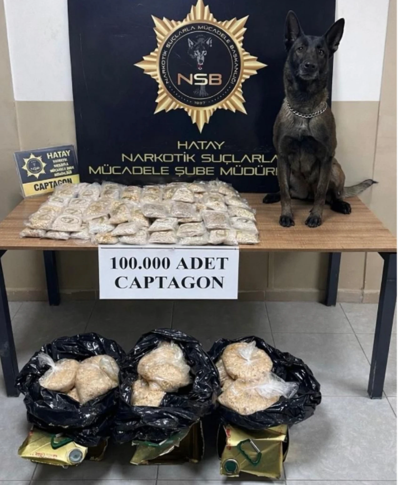 Hatay Emniyet Müdürlüğü’ne bağlı Kırıkhan Narkotik Suçlarla Mücadele Büro Amirliği ekipleri, uyuşturucu madde kullanımı ve ticaretinin önlenmesine yönelik çalışmalar kapsamında Kırıkhan’da bir aracı durdurdu. Araçta yapılan aramada, zeytinyağı tenekeleri içerisine gizlenmiş halde 100 bin adet Captagon hap ele geçirildi. Ele geçirilen uyuşturucunun toplam ağırlığının 15 kilo 772 gram olduğu bildirildi.